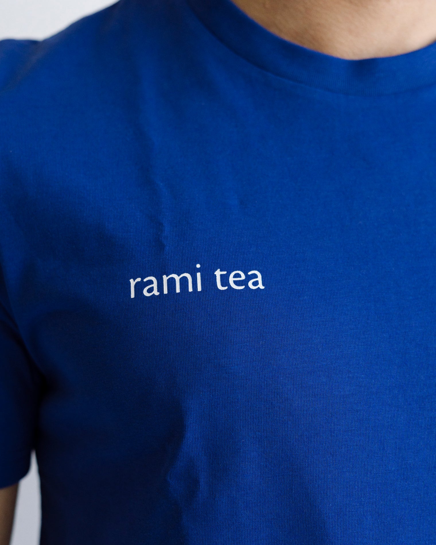 Ein bequemes, blaues Baumwoll-T-Shirt mit „rami tea“ auf der Vorderseite und unserer Teetassen-Logo auf der Rückseite. Das perfekte Shirt, um deine Liebe zum Tee jeden Tag zu zeigen.