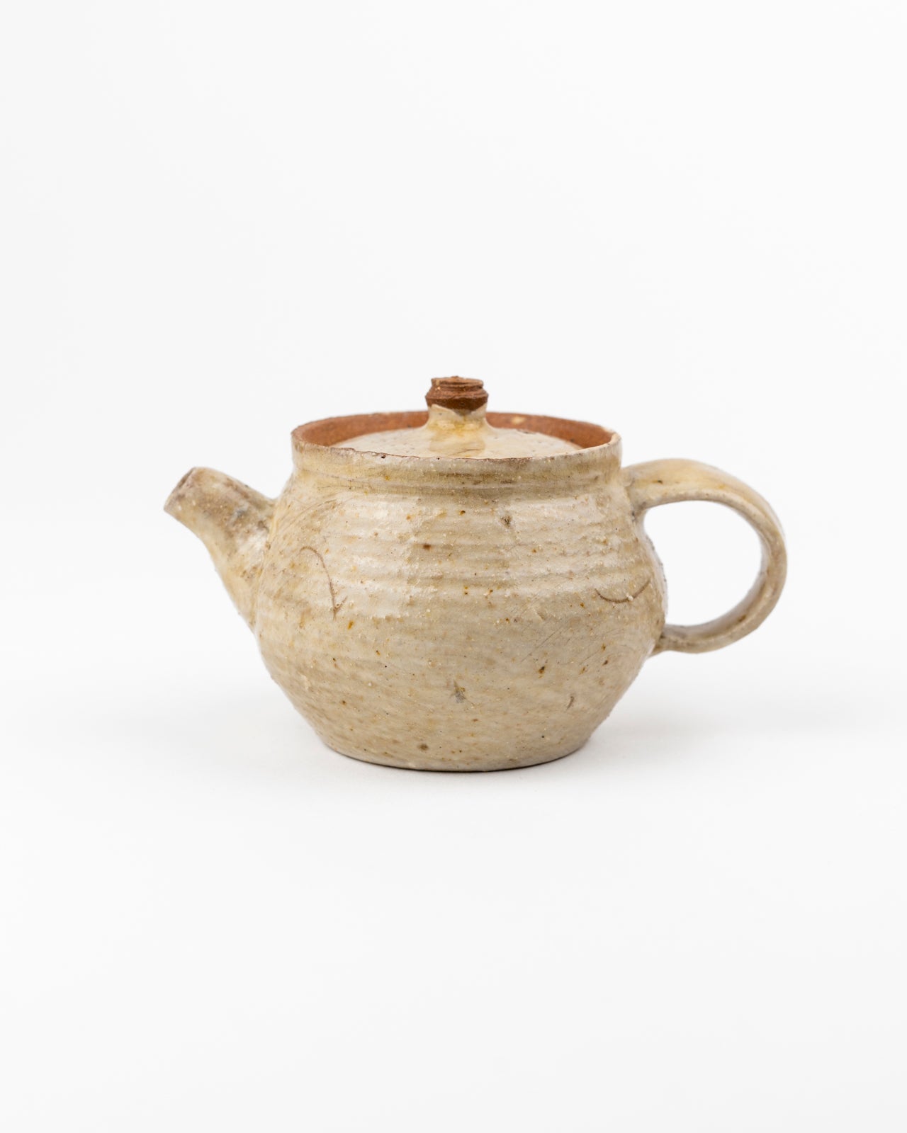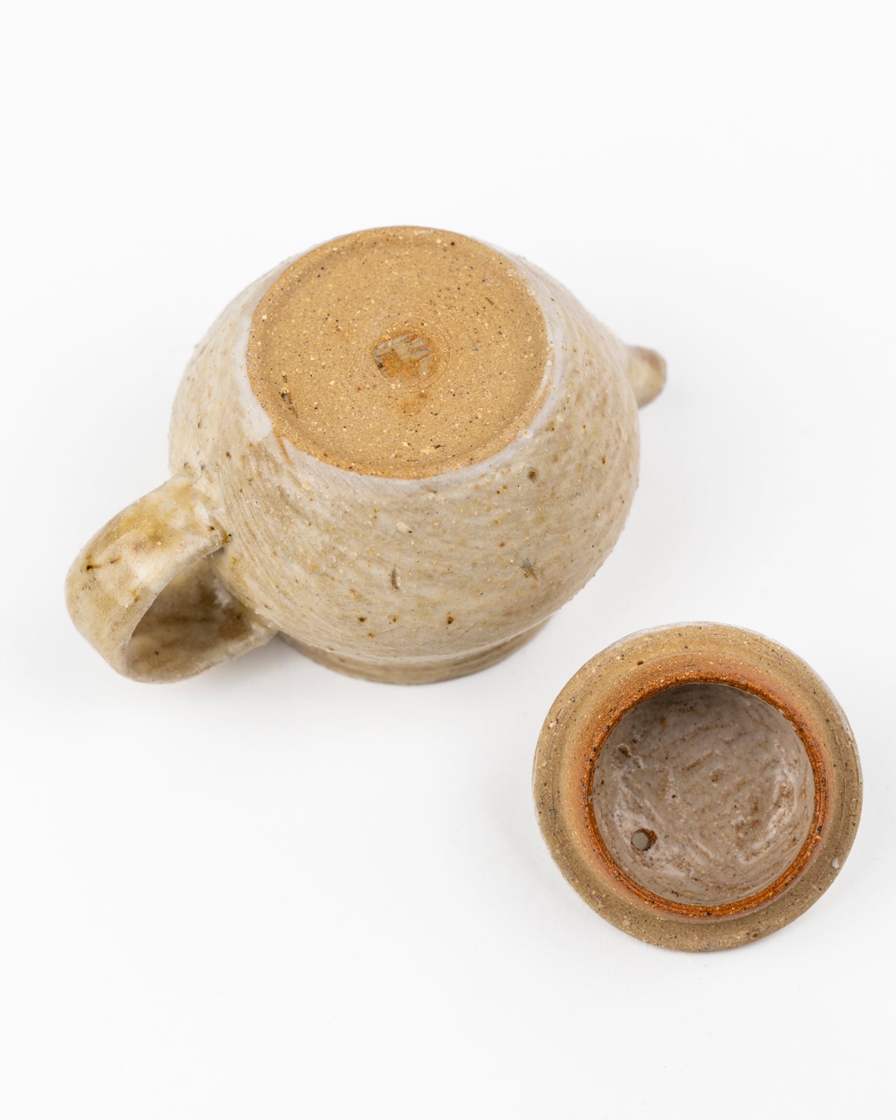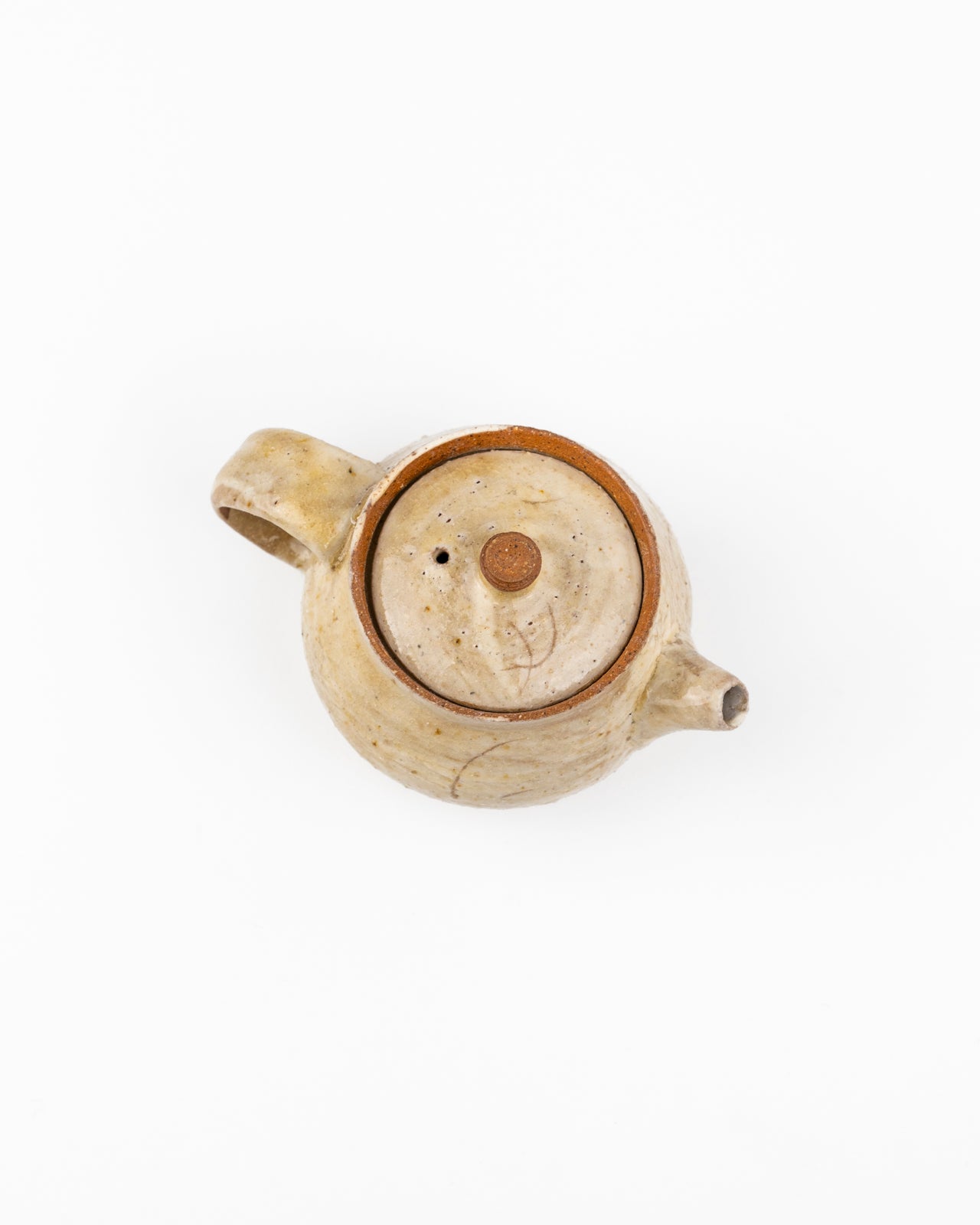 Handgefertigte Keramik-Teekanne von Andrzej Bero mit weißer Glasur und feinen Details.