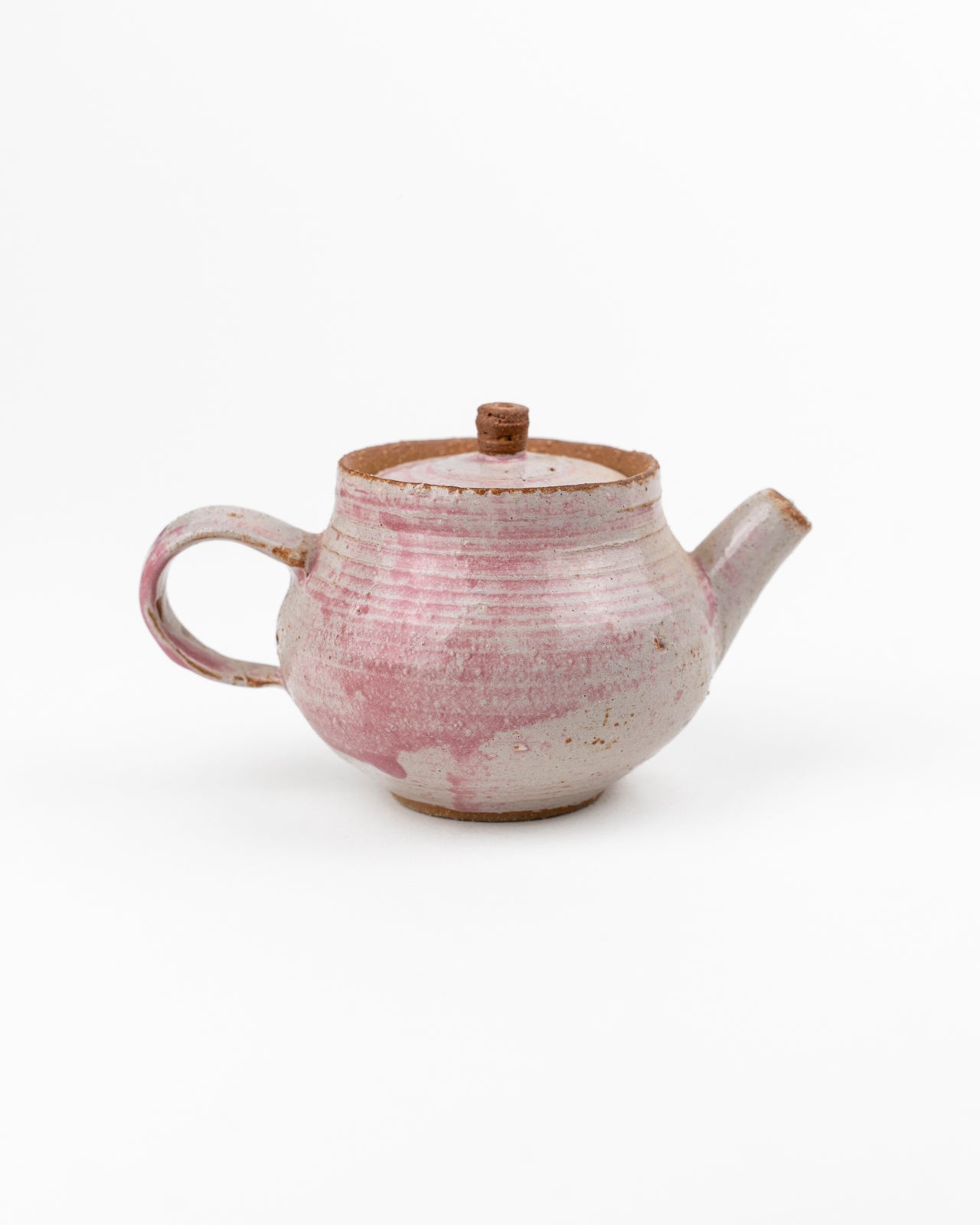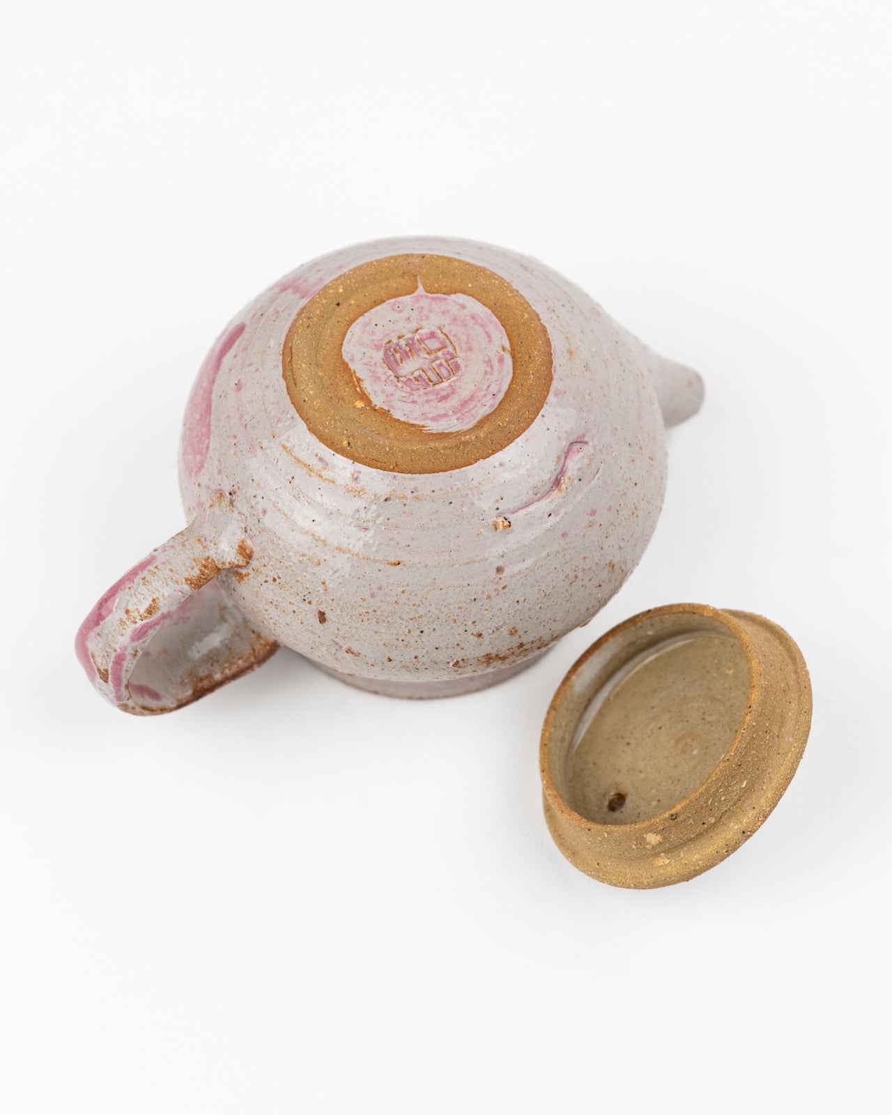 Handgefertigte Keramik-Teekanne mit weißer und rosa Glasur von Andrzej Bero