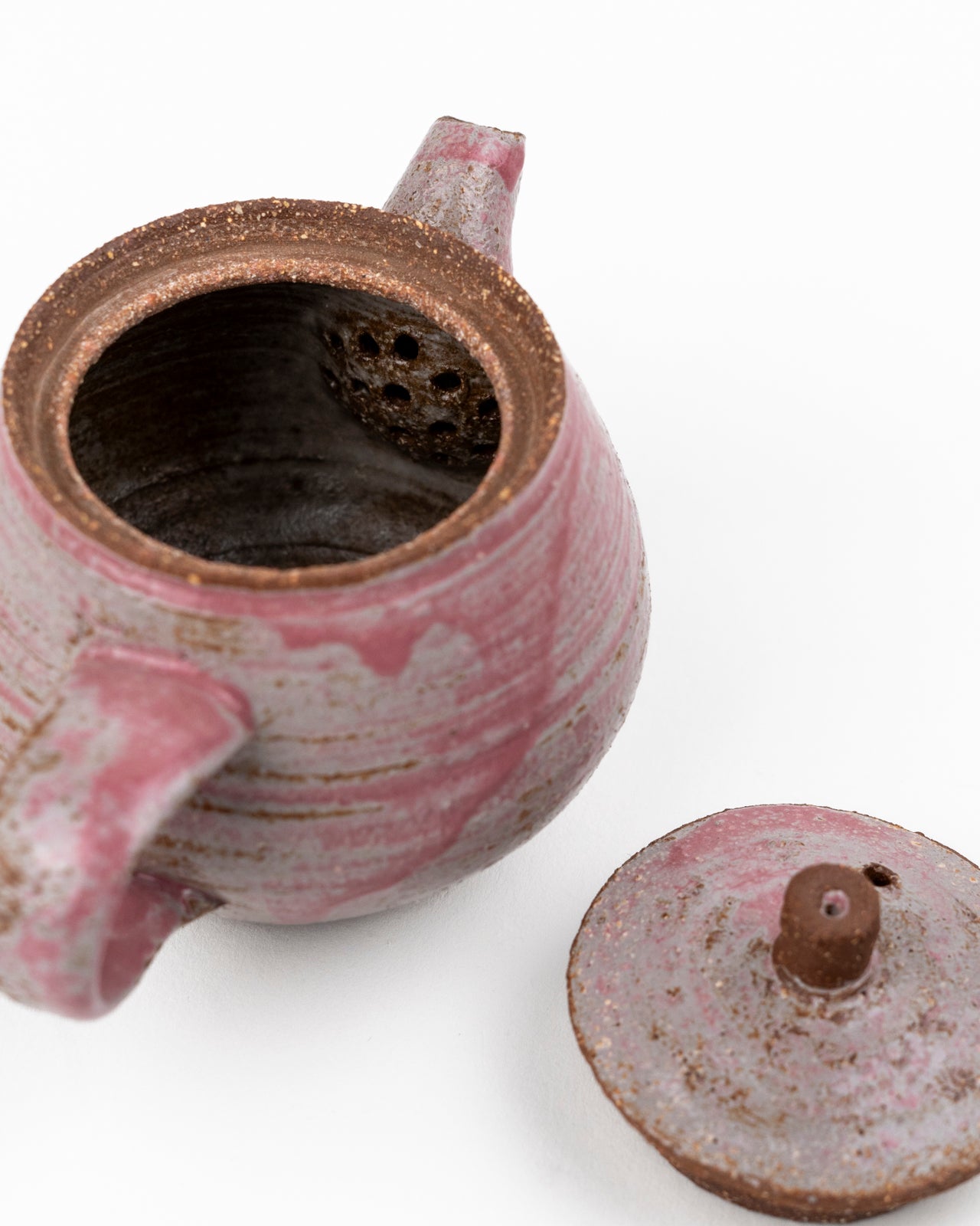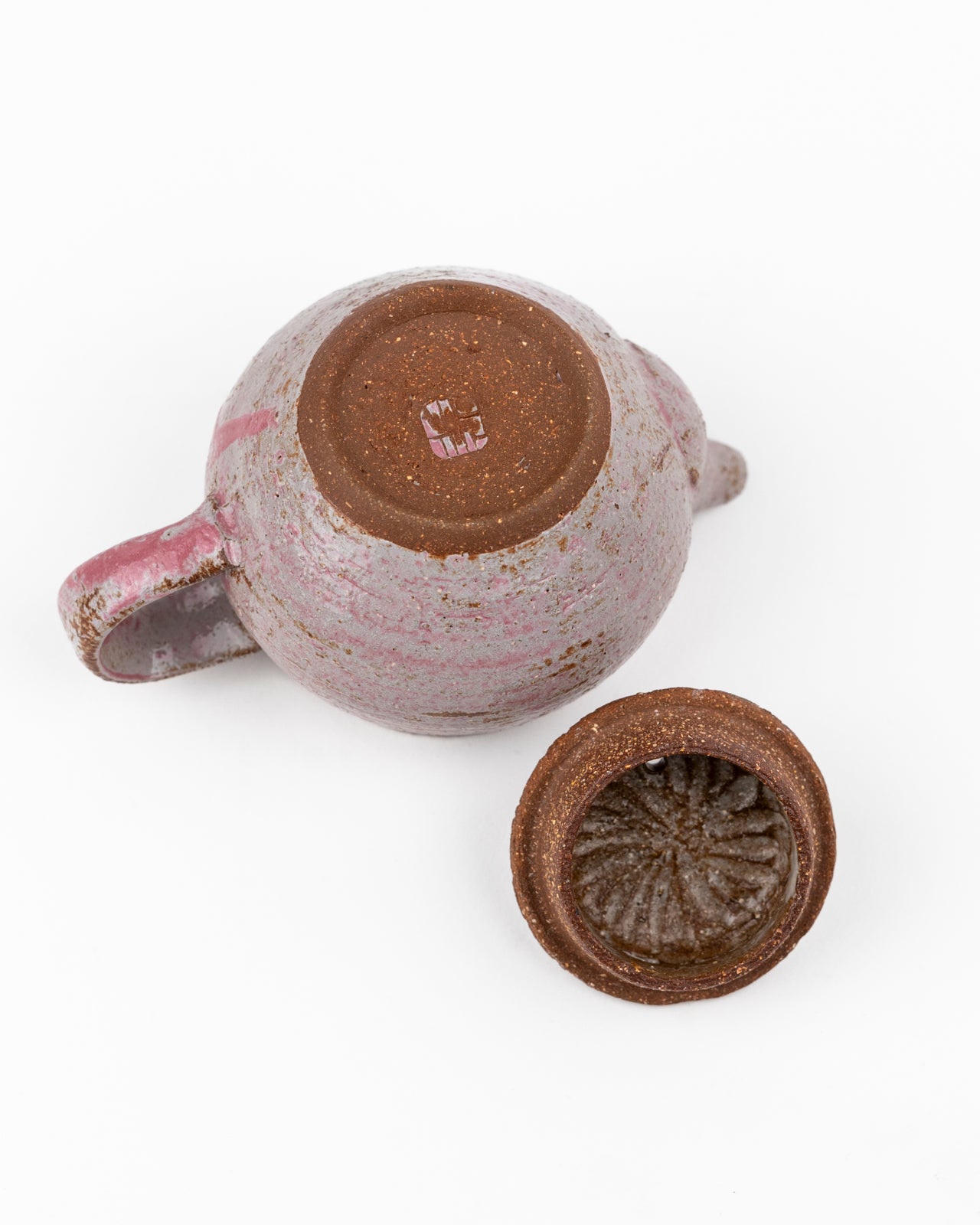 Keramik-Teekanne aus rotem Ton mit weißer und rosa Glasur von Andrzej Bero.